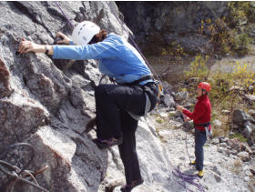 In harmonischen Kleingruppen werden Grundkenntnisse in Seilkunde und Klettertechnik vermittelt. Dem spielerischen