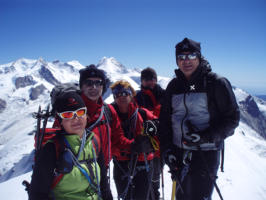 Über den Monte Rosa Gletscher gelangen wir am nächsten Tag zum Gipfelaufbau der